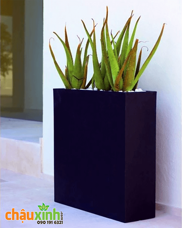 Chậu xi măng đá mài màu đen: Đây là màu bán chạy nhất trong 3 màu, bề mặt màu đen mờ + đốm đá li ti, nhìn rất sang trọng. Màu sắc được tạo bởi màu trong phôi liệu và lớp chống thấm bên ngoài.