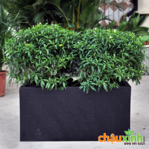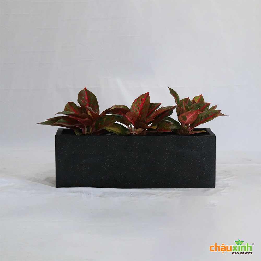 Chậu xi măng đá mài màu đen: Đây là màu bán chạy nhất trong 3 màu, bề mặt màu đen mờ + đốm đá li ti, nhìn rất sang trọng. Màu sắc được tạo bởi màu trong phôi liệu và lớp chống thấm bên ngoài.