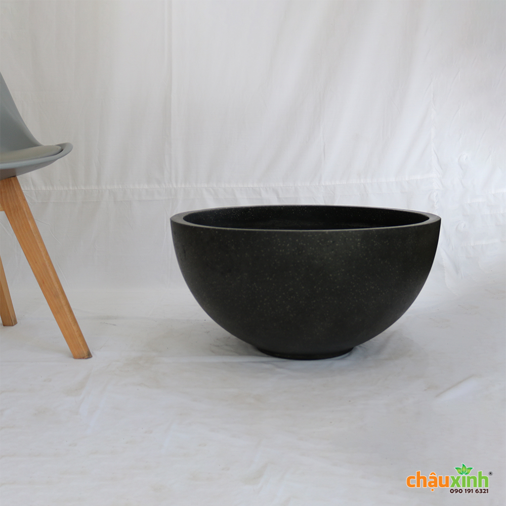 Chậu xi măng đá mài màu đen: Đây là màu bán chạy nhất trong 3 màu, bề mặt màu đen mờ + đốm đá li ti, nhìn rất sang trọng. Màu sắc được tạo bởi màu trong phôi liệu và lớp chống thấm bên ngoài.