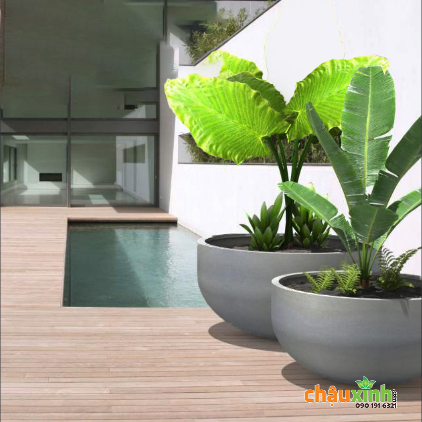 Chậu xi măng siêu nhẹ dáng tròn bo đáy